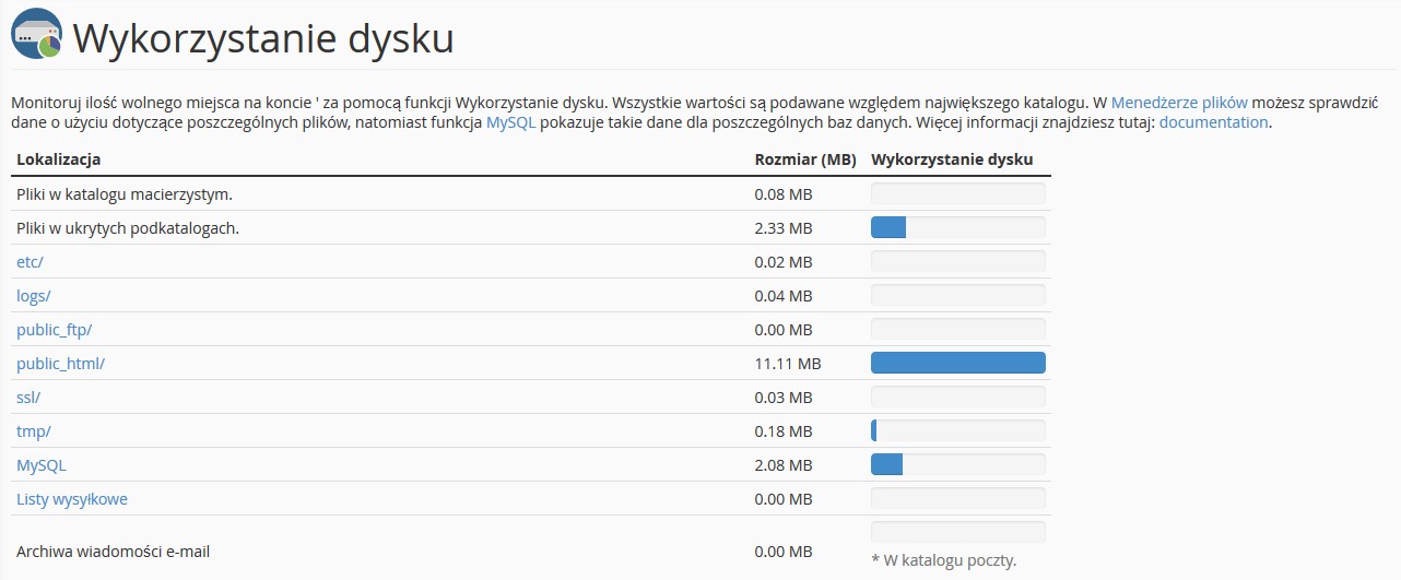 Przypadek ten wpływa również na Twoje konto pocztowe, ponieważ przestrzeń dla plików do wyświetlania strony www i przestrzeń dla poczty jest wspólna.
